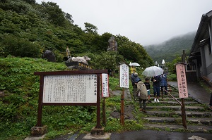 「出羽三山にまだお参りしていないナ」とふと思い、安全祈願に出掛けることに。山形県へクルマで向かい、初日は湯殿山へ。仙人沢駐車場から歩いて30分ほどで湯殿山神社本宮に到着。近付くと写真撮影は禁止、そして、参拝は靴を脱いで裸足でとのお達しに驚く。初めてのことでなかなか印象的なお参りとなった。