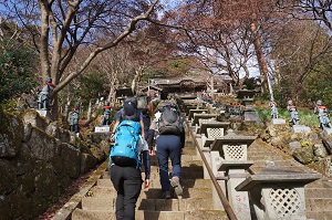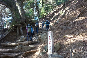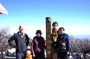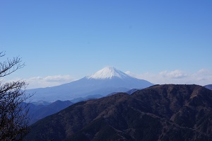 千葉の朝は曇天の空、晴れ予報を信じ丹沢の大山へ登山に行きました。一年の安全と健康を願う初詣山行です。スタートは長い階段を登りケーブル駅付近で一息。そこから男坂は遠慮して女坂を登って行くと上から大勢の野球姿の子供たちが降りてくる。大きな声でこんにちは!こんにちは!と挨拶をされ元気をもらうことに。女坂をこなし大山寺に到着。お参り後、かわらけ投げなどをして頂上登山口へ。阿夫利神社下社からは、一丁目から二十八丁目までの標識をゆっくりと進む。やがて青空に代わるのと同時に強い風が吹きはじめる。寒い中、途中の登山道からは雄大な富士山の姿を望むことができました。風に煽られるので足元に注意しながら一歩一歩進み大山阿夫利神社山頂に到着しました。昼食をサッと済ませてヤビツ峠へ下山、気持ちも新たに今年一年の安全な山行を願う山旅となりました。(品)