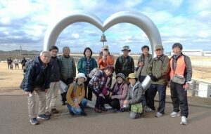 参加者集合写真(ひこうきの丘・ハートのモニュメント)