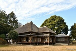この地は、古来より馬の放牧が行われ江戸時代には「佐倉牧」が設置され、当時3000頭が幕府御用馬を生産していたという。そんな古き昔の地に、成田空港が建設されて開港以来50年近くになる。最初の立寄り地は、京成成田駅前からバスに乗車して「旧岩崎久弥末廣農場別邸公園」に到着。三菱三代社長岩崎久弥が、晩年に過ごした旧岩崎家末廣別邸である。この岩崎家が所有していた農場(東京ドーム約73個分)内では、主屋や東屋を見学した。