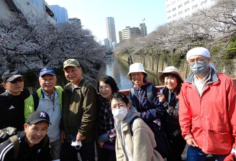 冬の終わりを告げ「花の便り見聞が多くなった3月(ウォーキング)は、目黒川花見ウォーキングを計画実施することになった。リーダー役はウォーキング参加の常連のSさんが買って出た。集合地「JR目黒駅東口改札出口」に早目に着いたが、リーダーは既に到着して参加者の合流を待っていた。