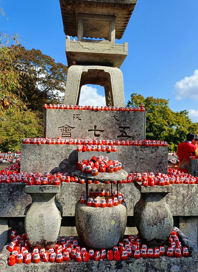 翌27日は、大阪・箕面のハイキングコースで記念山行。落差30mの迫力ある箕面大滝を見物したのち、東海自然歩道の西の起点を通り、勝尾寺まで。大人数なので小グループに班分けしたが、私たちの班は歴代最年少で市長になった芦屋市長の髙島さん(28歳!)が参加、一緒に歩きました。灘高→ハーバード卒と絵に描いたようなエリートなのに、とても親しみやすくて話が面白い好青年でした。ゴールの勝尾寺は、広い境内に小さなダルマが沢山。インスタ映えするせいか、観光客は外国の方々ばかり。外国人にはかなり有名なお寺のようです。境内で一休みして、バスで新大阪駅へ。ここで解散しました。ずいぶん前から準備していただいた関西支部の皆さん、お世話になりました。ちなみに、来年の全国懇は富山で9月に開かれます。(三)