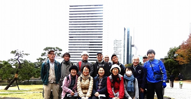 二つの恩賜公園と築地市場に残るインド風寺院と旧史跡を巡るウォーキングコースは、JR浜松町駅・改札(北口)出口10:1Sスタートして、旧芝離宮恩賜庭園ニューピア竹芝⇒浜離宮恩賜庭園⇒カレッタ汐留(46F展望スペース)⇒築地場外市場「昼食」⇒築地本願寺⇒かちときばし⇒史跡『浅野内匠頭邸跡・芥川龍之介生誕の地石碑』」を辿って、15:30ゴール解散した。歩数19,000歩、歩行距離約15kmであった。