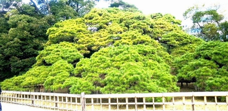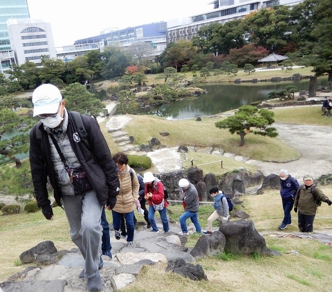 当日は、祭日(休日)であったので、立ち寄り地は行事開催もあって何処も多くの人々で溢れていた。浜離宮恩賜公園内は「西洋馬術導入の地」であり、流鏑馬(やぶさめ)・現代馬術に関するパネルや馬具の展示、木馬試乗や弓体験などが開催されていた。木馬試馬や弓体験には、ウォーキング参加者も体験した。大手門出口近くの6代将軍徳川家宣が植えた「三百年の松」を暫し観た後は、園外コースウォークが続いた。