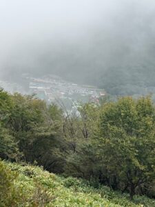 来年のあかぎ林間学校の山行地の調査のため、大洞駐車場から地蔵岳への道をたどってみた。天気予報ではだんだん良くなる見通しだったが、結局霧の中を登って、霧の中を下山。