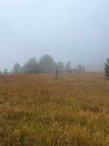 沼山峠からは通いなれた道だが、今年は途中で寄り道。一登りし、小淵沢田代をまわって長蔵小屋へと下った。小淵沢田代は霧が流れ、幻想的なたたずまい。しばし立ちつくした。