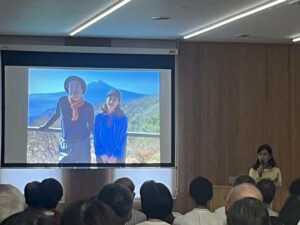 講義は三浦ドルフィンズ所属で体育学博士の安藤真由子さんによる「より健康になるためのウォーキングの取り組み方」。科学的な根拠を視覚的にわかりやすく示しながら、ウォーキングの効果やより効果的な歩き方、里山ハイキングのすすめなど、参加者もともに体を動かしながら実践的に学んだ。