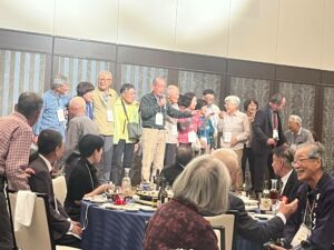 18時30分からは同じホテルで懇親会が開かれ、150人ほどが参加した。日本山岳会柏副会長による乾杯に始まり、各テーブルでは和やかに山を語り合っていた。また各支部紹介なども行われ日本山岳会の全国支部懇らしい楽しく有意義なひと時を過ごした。有志は2次会に繰り出し、さらに交流を深めた。
