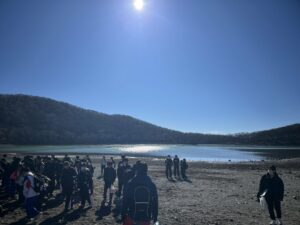 11月21日、千葉の中学生250人ほどと小沼から長七郎山を周回。先生方も大勢が引率・指導にあたり、群馬支部からも3人が参加。先頭、中盤、最後尾に配置した。2、3日前の寒波で雪に見舞われた赤城だが、この日はわずかに日陰に雪が残る程度で、風も無く小春日和で、遠く富士山も望め、中学生たちも喜びの声をあげていた。