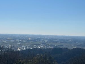 謙信平からは、東京都心のビル群から富士山まで一望。文字通り関八州を望む大パノラマ。