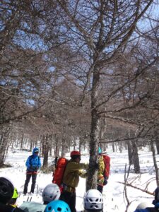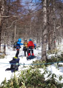 翌日は黒斑山山麓に場所を移し、歩行技術やロープワークを中心とした実地講習が行われました。