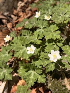 ニリンソウ群生地には、咲き始めたばかりのニリンソウが