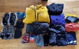 日本の秋登山と同じ装備をパッキングした.