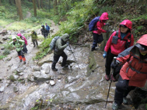 雨が激しく降ることはなく、ゴールが近くなると登ってくる人と本日初めてのすれ違いもあったりして、天候の心配は杞憂に終わりました。天気が悪くても、自然が好きな仲間達は、自然に逆らうことをせず、ありのままを楽しむことを知っている。そんな充実感と無事に終われた安堵感で、とても満たされた気持ちで帰路につきました。ご参加の皆様、ありがとうございました。(記:山行委員 坂倉理恵)
