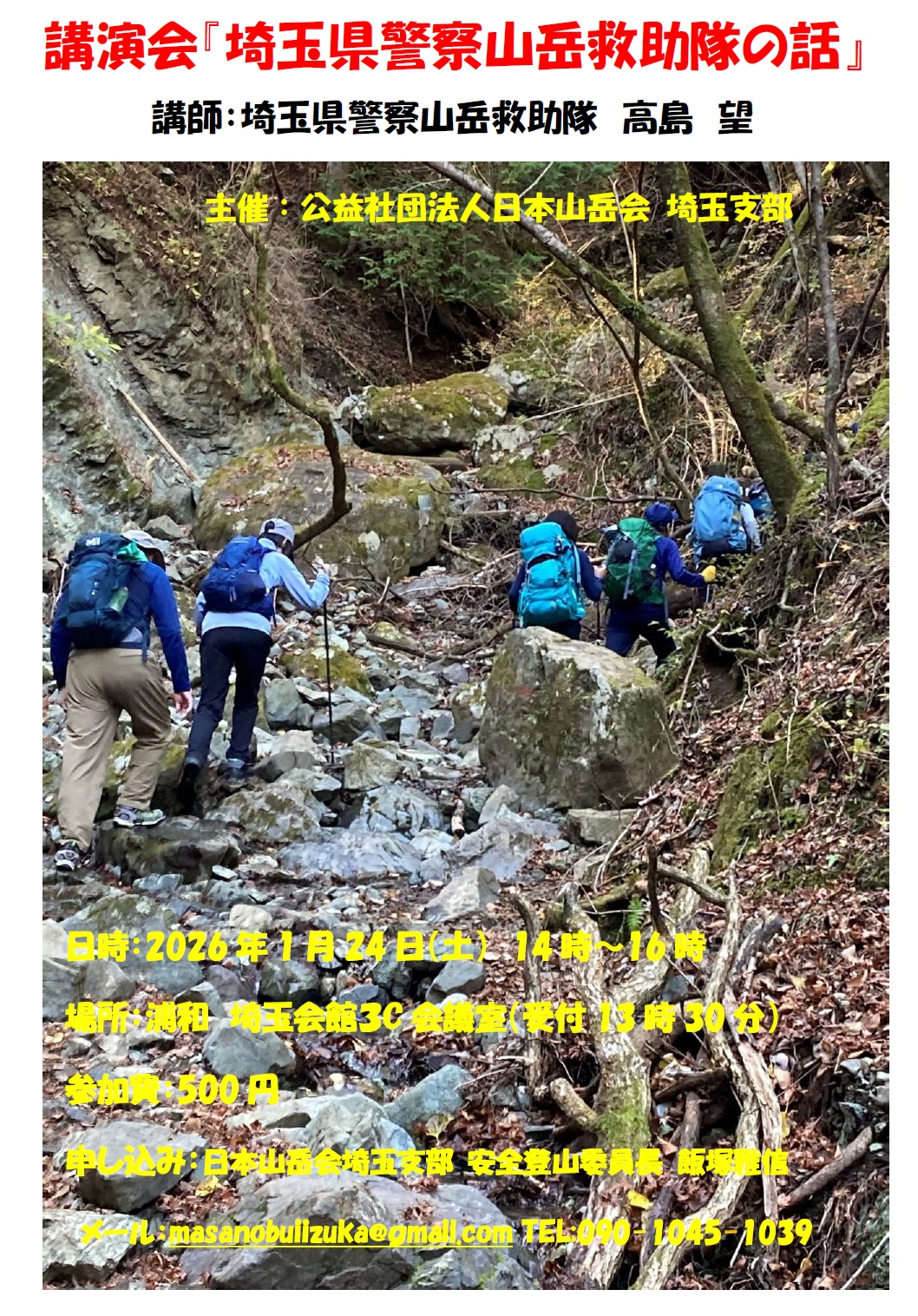 「埼玉県警察山岳救助隊の話」講演会のお知らせ(安全登山委員会)