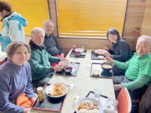 今年度は参加者6人で開催しました。今回は①雪質良し②天気良し③混雑無し、と昨年とは大違いの尾瀬岩鞍でした。又、昼食場所も混雑を予想して会員の方がテーブルを予約してくれていて、懇親と食事もスムーズに行われました。休日の短い時間でしたが、個々の技量に応じたスキーを楽しめたのではないかと思います。帰路は、温泉とファミレスに寄り充実した日帰りスキー会でした。