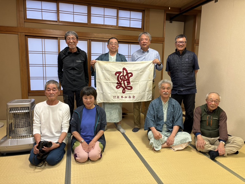 清水屋旅館での懇親会前に集合写真です。外は雨の音が聞こえます。