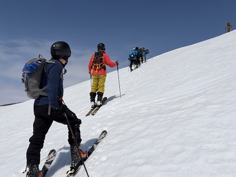 広い斜面を滑降します。途中にクレバスがあり、慎重に横断します。