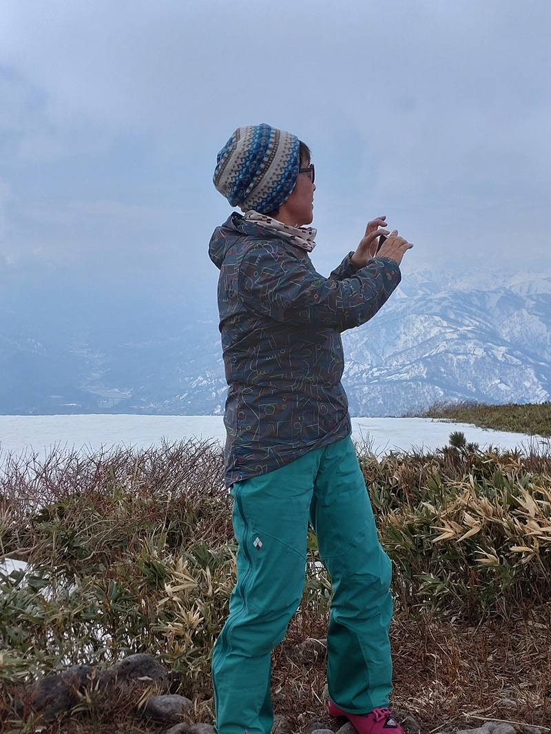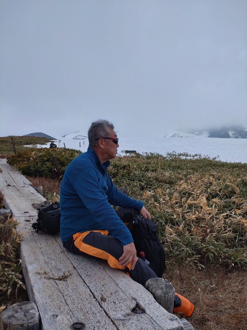 一休みの後シールを外して下界に向かいます。少しガスがかかってきました。